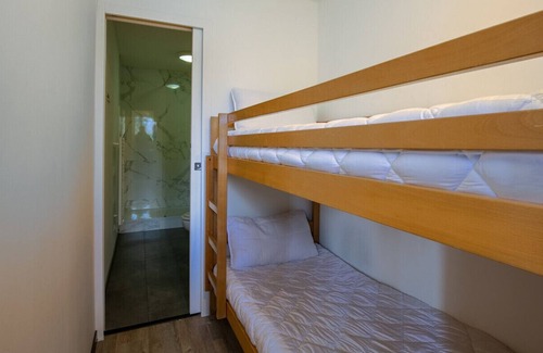 In addition to its location at the foot of the slopes, the main advantage of the apartment is its welcoming atmosphere, elegantly simple. Recent refurbishments, carried out with care, bring modernity and comfort to the rental of Val Louron. As a family, 4 to 6 people (4 adults maximum) have a bedroom with a queen size bed, bunk beds installed in a small bedroom and a double sofa bed in the living room. Quality bedding ensures restful nights. The bathroom has a shower. With its reduced size, the well-appointed kitchen leaves room for the main room. Compact, however, it is fully equipped (ceramic) to cook as easily as at home. The living room combines the dining area and a living room with TV screen. It opens onto a wooden balcony overlooking the mountain slopes of the Pyrenees. The small hallway forming the entrance allows you to put down jackets and shoes when you return from mountain activities. Even if it is not necessarily useful during the holidays, the car is easily parked in the outdoor parking nearby.
