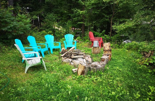 Fire pit in front yard with picnic table - another fire pit is half way down to the lake. HAVE The GARDEN HOSE AT THE READY when using fire pits. Use discretion with fire size as there are trees over hanging which could catch fire. Late at night, please be respectful with noise level.