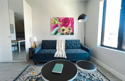 Experience modern living located at the heart of the energetic Drake neighborhood. Based on a design-led aesthetic and commitment to modern simplicity, our apartments are functional, luxurious, and bathed in natural light. The studio includes a full living room area, kitchen, bathroom, and in-unit laundry area. The living room area also has a futon for additional sleeping accommodations.