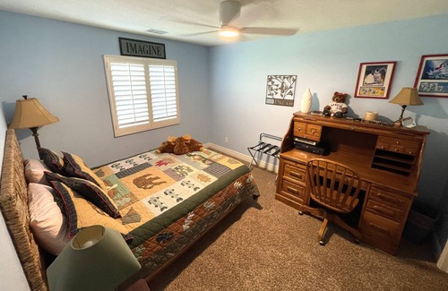 Big Screen TV, Loft for working out, dining room table, parking in garage, WIFI, Washer/Dryer, Relaxing fountain in yard, dishwasher, over, stove, microwave, toaster over, Kurig Coffee Maker.