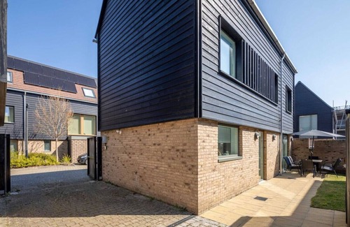 Inside, the spacious hall leads to an open-plan living, dining, and kitchen area—perfect for unwinding after a day in Cambridge or a busy day at work. The outdoor garden space features seating for up to eight, providing an ideal space for al fresco dining or relaxation.