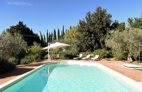 Santa Rosalia is a family villa in the country with a large pool and garden. A lush Mediterranean garden is offset by a large pool 12 x 6 metres, surrounded by olive trees. You can relax on a sunbed by the pool under a beach umbrella or enjoy the view of the pool and garden from the vine-covered pergola in front of the villa.