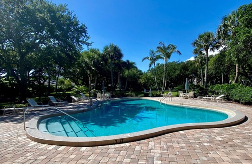Spacious condo with views of oak canopy, gardens & pool. 5-minute walk to beach. | Condo in Indian River Shores