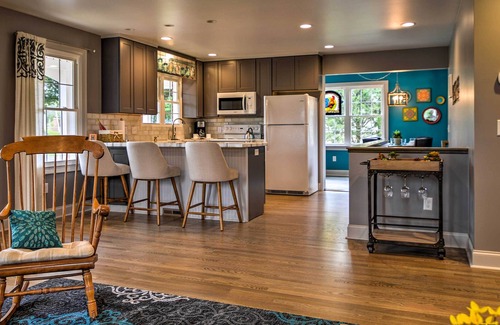 Discover 'The Friendly City' of Harrisonburg, Virginia from this prime vacation rental home situated just 4 miles from downtown. Fully remodeled in 2018, this charming brick veneer house boasts a picture-perfect interior with updated furnishings, modern decor, and colorful artwork from the owner’s stained glass studio next door. After day's spent biking or exploring the lively city, 6 guests can unwind on the deck of this spacious 2-bed, 3-bath abode featuring 2,160 square feet of living space!
