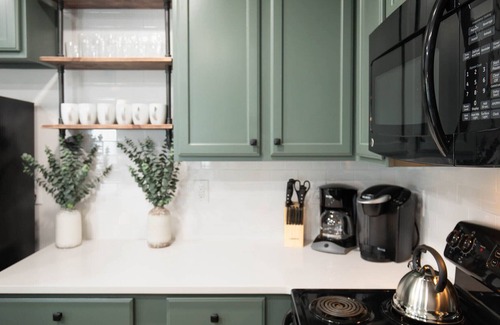 Open concept kitchen is fully stocked and opens into the dining area and living room. Enjoy the upstairs game room filled with board games, shuffleboard and a foosball table! Minutes away from shopping and dining.