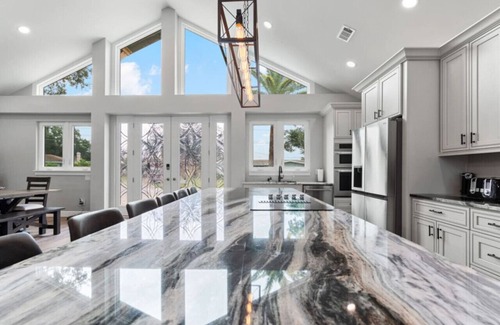 Escape to this luxurious lakefront home on Lake Tarpon, perfect for groups up to 10. Enjoy spacious living with 4 bathrooms, a large open kitchen, and stunning lake views. Relax by the private screened-in pool, fish or boat from the private dock, or gather around the dining area for memorable meals. This home offers comfort, style, and easy access to lake adventures, making it ideal for family gatherings or group getaways. Book your unforgettable stay today!