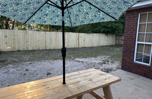 This spacious home features newly remodeled kitchen and bathrooms. The kitchen is equipped with stainless steel appliances and quartz counters. The living room has cathedral ceilings and smart TV. Off the living room is a bonus sunroom with a variety of workout equipment. The primary bedroom has a king size bed with large en suite bathroom. The primary bathroom includes a custom walnut and quartzite double vanity. The guest room has a queen size bed with a full hallway bathroom. This home is 6 miles to Navarre Beach and 17 miles to Hurlburt Field.