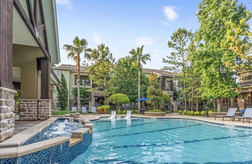 This beautiful resort style lodge is located in the heart of The Woodlands. It offers exquisite architectural features such as dramatic nine-foot ceilings combine with luxury amenities including a spacious club house, state-of-the-art fitness center with a on-site personal trainer and a beautiful pool with Cabana. You can't beat this property's convenient location. It's very easily accessible from I-45. Most of the big box stores and major restaurant chains are just minutes away from this property. The Woodlands Mall and Market Street, Cynthia Woods Mitchell Pavilion which hosts lots of major concerts is just minutes from the property, so make sure to check out what events are happening during your visit. In about 20 minutes you can also reach lake conroe, which offers tons of activities like water skiing, fishing and much more. This property is also minutes away from beautiful golf courses like The Woodlands Resort and Country Club and much more. Downtown Houston is only approximately 30 minutes away.