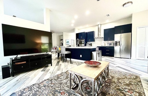 • Living room has an extra large sectional with recliners and 75in Smart TV
