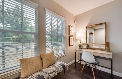 All you need are your clothes and food. This is in a quiet friendly neighborhood with a dog park infront and walking trails near by. You will love the cozy at home feel without sacrificing style. Out door seating and eating on the covered patio.