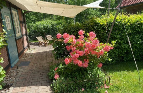The surrounding area is perfect for exploring. From the edge of the forest, you can immerse yourself in the picturesque landscapes of Mecklenburg-Vorpommern and experience the tranquillity and beauty of the region on hikes or cycle tours. The holiday flat is also equipped with a charging station for electric cars, so you can explore the surrounding area in an environmentally friendly way. The shared garden offers additional space for relaxation and leisure activities.