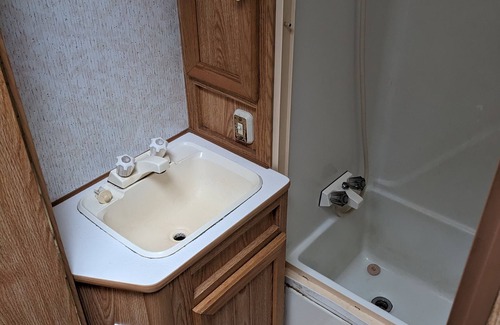 After a long day of hiking the local trails or exploring the beach, take a hot shower in the trailer or in site's showers (inc. coin laundromat). This 5th wheel is move-in ready. In excellent condition and loaded with all the essentials: Kitchen: Fridge, Stove (propane), dining table. 3 pc. Bathroom: (new hot water tank), Bedroom: Cozy queen-size bed, and couch (sofa-bed). Propane furnace and AC (new blower).
