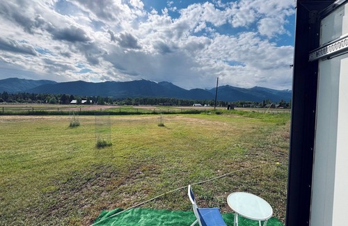 Nestled on the outskirts of Stevensville with a beautiful view of the Bitterroot Mountains, this spacious camper offers many amenities, easily sleeping 4! The view of the Bitterroots is breathtaking. Walking distance to downtown Stevensville, and about 30 miles south of Missoula, this location offers the best of both worlds. With easy access to fishing and hiking nearby, you'll get to experience all that the Bitterroot has to offer. This travel trailer features 1 queen bed and bunk beds, perfect for a cozy stay. With heating and AC, guests can enjoy a soothing atmosphere no matter the weather.