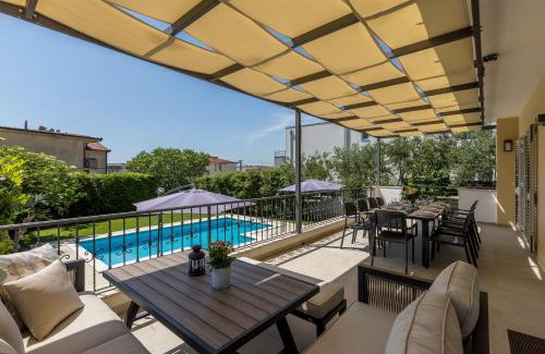 Split-Villas Dalmatica for 12 is located in Split, just a 10-minute walk from Sand Beach Strožanac and 5.5 miles from Mladezi Park Stadium. This beachfront property offers access to a balcony, table tennis, free private parking, and free Wifi. The accommodation provides airport transfers, while a bicycle rental service is also available. Providing a terrace and mountain views, the spacious villa includes 6 bedrooms, a living room, satellite flat-screen TV, an equipped kitchen, and 3 bathrooms with a shower. Towels and bed linen are featured in the villa. The property has an outdoor dining area. Guests can make the most of the warm weather with the property's barbecue facilities and save a trip to the supermarket by requesting grocery delivery. The area is popular for hiking, and car rental is available at the villa. Guests can spend time in the casino or enjoy the outdoor swimming pool and garden at Split-Villas Dalmatica for 12. Diocletian's Palace is 5.5 miles from the accommodation, while Salona Archeological Park is 6 miles away. Split Airport is 15 miles from the property.