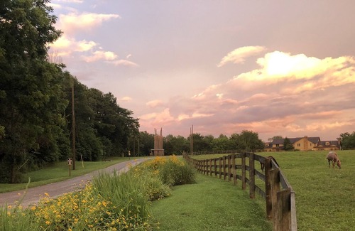 Guests at St. Noel will have their sleeping suite and private bathrooms to themselves, each with a private entrance and lockable door. Each suite has 1 queen bed, 1 full-size bunk, and several twin-size bunks for extra people or kids. The entire building has free WiFi. A large shared front deck has seating for taking in sunsets and views of our horse pastures. The walk-out lower level common area is shared among all guests at St. Noel. There is a quiet reading room with couches and workspace, beverage/snack machines, a large meeting/dining room with seating for up to 30 people, indoor fireplace, long tables, stackable chairs, trash/recycling containers, kitchenette, and a common restroom. The shared kitchenette includes a mini-fridge, sink, microwave, coffee/creamer/sugar and coffee maker, tea and electric tea kettle, ice machine, and toaster. The common outside patio area has a gas and a charcoal BBQ grill, fire pit, and patio chairs. A second fire pit area with benches and picnic tables is a short walk away. Firewood is available for sale. For exclusive use of any of these spaces, contact Ondessonk staff.