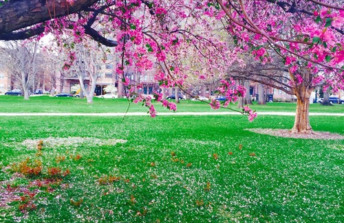 The green, canopied front patio provides a friendly chill-out space to enjoy Denver's blue skies. In summer, we welcome guests to visit the back yard to pick tart apples from one of our apple trees.