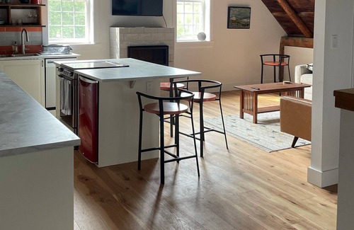 Stillwood Loft is an apartment on the upper levels of a barn (circa 1850) on a 26 acre farm property. In Prince Edward County, known for its wineries, craft breweries, art galleries and beaches. The original exposed beams combined with modern millwork and finishes make Stillwood Loft an interesting place to stay. Hickory wood floors, high quality furnishings, artwork and a propane fireplace add to the ambience. Heated and air-conditioned with geothermal units and solar panels the barn is cozy in winter and cool in summer and located on a pretty rural road, 8 km. from Picton, Ontario, 25 minutes from Sandbanks Provincial Park. Renters are welcome to use the owners season pass to the park.