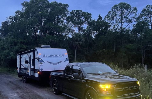 Super quiet and private property. You can be there with your family and stay relaxing at beautiful deck and enjoying bonfire 🔥! This trailer has a central A/C unit, comfortable Bathroom full kitchen