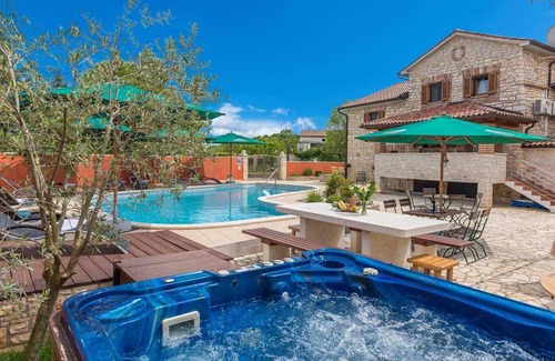 Apartment complex Villa Anja is located in the village Medaki, only 2 km from the sea and the Lim Canal. Villa Anja is a complex of 6 apartments for 2-6 persons. Guests of this beautiful, typical Istrian house can enjoy a pool (80 m2), a whirlpool, and a barbecue. All apartments are fully equipped with all the necessary amenities for a comfortable and enjoyable vacation. Each of the apartments has its own private terrace with seating and parking for the car. A large and well-maintained yard with a large pool and whirlpool will delight your friends and family. All suites are additionally equipped with air conditioning, Sat-TV and a dishwasher. Pets are welcome at an additional charge. This comfortable holiday house near Rovinj and Poreč is characterized by a typical Istrian architecture and friendly hosts that are always at your service. Nearby there are several famous restaurants, bicycle trails, promenades, sight seeing options and other entertainment facilities.