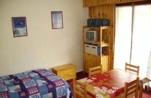 (Text automatically translated) Located near the tracks, studio for 4/5 people in perfect condition, exposed east / west, with a spacious living room with a bed of 140cm, a bz 140cm (if needed), a cabin entrance with 2 bunk beds, separate kitchen, bathroom with shower and toilet, TV balcon.A your disposal with DVD, games, raclette service etc. ... Restaurants, shops, tourist office, ski rentals and other sales office packages ... at the foot of résidance.
