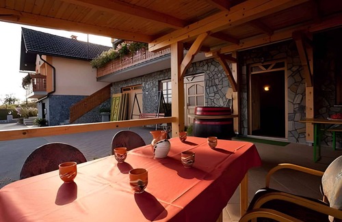 The studio is located in a single-family home and is furnished in a typical country style. Also due to its quiet location the domicile is popular. Available for use: children's playground and barbecue facilities. Lounge.LocationŠmarješke Toplice. The studio is located on a garden plot. The landlord does not live in the house or on the property. Parking is available on the property. Specialair conditioning, central heating.Facilities: internet access (WLAN), phone and washing machine. Dogsallowed, EUR 30.00/pet per stay. DistancesShopping 1000 m, restaurant 1000 m, town center 1000 m. airport in Brnik Ljubljana 70 km. railway station, cinema, doctor, pharmacy, bank each 11 km in Novo mesto. discotheque in Otočec 4 km. thermal bath, indoor swimming pool, sauna each 3 km in Šmarješke Toplice. Bus 1 km Tourist Information 2 km away. 3 km spa Smarjeske Toplice. In summer: tennis, golf, horse riding, fishing, boat rental each 6 km in Otočec. In winter: Ski lift 27 km in Črmošnjice. (TC Gače). ski rental, trail each 27 km in Gače. ice skating in Novo mesto 11 km. ski school in SD Krka Rog 27 km. DivisionStudio, 1 floor, 1 room, 36 sqm, in total 4 beds (including 2 additional beds). Room Living/bedroom with 1 double bed, 2 additional beds, TV, dining area and access to the balcony (9 sqm). Cooking nook in the living & bedroom with gas stove, oven, fridge (icebox) and microwave. Bathroom with shower and WC. Terms of lease and pricesIncluded in the priceinternet access, air conditioning, parking place, electricity, water, heating, final cleaning, bed linen, hand towels, Wireless Internet access. Side costs-Additionally(Payable when booking)/local tax.Deposit:No deposit.