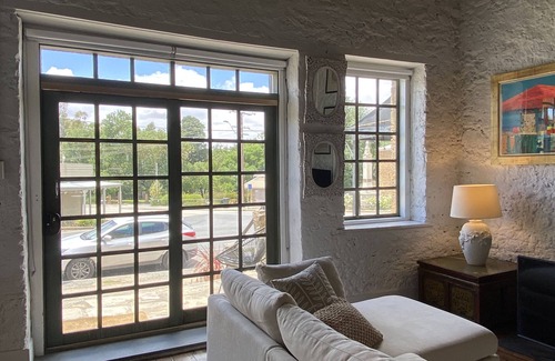 This dramatic and light filled building is utterly unique. In the heart of Auburn’s historic main street this airy well-appointed space overlooks the town and is ideal for relaxation and entertaining. Featuring an open plan living area with a large kitchen and stunning stone bar, you will be able to easily stroll to neighbouring cellar doors and drink in the charming heritage of this beautiful town. While it is a one bedroom apartment, due to its size we have added a curtained off extra bed to allow for extra guests if your group is a larger size.