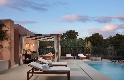 The outdoor area with a Mediterranean garden and a large sun terrace offers a harmonious combination of modern luxury and nature. Refresh yourself in the magnificent infinity pool, enjoy a sundowner on the roof terrace or spend cosy barbecue evenings under the pergola.