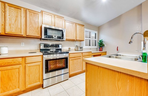 Upon entry, you'll be met with a bright interior and a warm feeling of welcome throughout the space. Make yourself at home by sitting on the plush furniture, carrying on a great conversation, or streaming a movie on the large TV. Hobby chefs will love creating culinary charms in the full kitchen, equipped with stainless steel appliances. With three beds, there's more than enough room for everyone to get a comfortable night's rest from the day's activities. Sip your coffee out on the patio and enjoy a peaceful Arizona sunrise, starting your day off right. Make memories that'll last a lifetime here in beautiful and sunny Arizona!