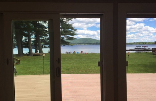 One of the best views of the lake. Enjoy the expansive yard with plenty of room to for everyone. Inside you will find 3 bedrooms with a fourth that has been converted into a separate living area. Large windows are found throughout the house, giving breathtaking views from every room. 100 feet of beach front with private dock. Located in the White Mountains, there are plenty of things to do in the area. Come and stay!