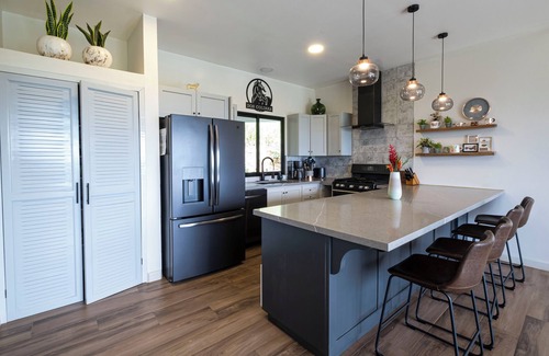 The property features four bedrooms: three with king-size beds and one with two twins. Situated in the secure Dos Colinas community with 24-hour security, guests have access to a pickle ball, lake, and walking trails.