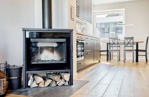 The property is a 3-room house spanning 68 square meters and spread over two levels. The living room features a Scandinavian wood stove and a television. There is one room with a single bed and a double bed. Another room has a double bed. Additionally, there is an open gallery with a double bed.
