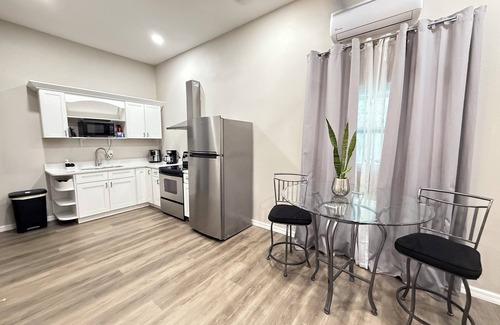 Welcome to your stylish one-bedroom hideaway, perfectly situated just minutes away from PIE Airport. This charming retreat is ideal for both leisure travelers and business professionals seeking comfort and convenience. With modern amenities and a spacious atmosphere (600 sq ft with 12 ft ceiling), you'll feel right at home during your stay. The bedroom features a comfortable queen-sized bed with high-quality linens, ensuring a restful night's sleep. Ample storage space is available for your belongings. The stylish living area is designed for relaxation, equipped with a smart flat-screen 55" TV and comfortable seating. Enjoy your favorite shows or unwind with a good book. The fully equipped kitchen includes modern appliances, cookware, and utensils, making it easy to prepare meals during your stay. A coffee maker is also provided for your morning brew. The bathroom is well-appointed with fresh towels and essential toiletries for your convenience. Free WiFi, Air conditioning, Smart 55" TV in living room and 40" TV in bedroom, Free parking on premises, and Self-check-in for added convenience. Located just a short drive from PIE Airport, this hideaway offers easy access to local attractions, dining options, and shopping centers. Explore the beautiful beaches of St. Petersburg or indulge in the vibrant nightlife nearby. Guests will have full access to the entire unit, including all amenities listed. Feel free to make yourself at home! Book Your Stay - Whether you're here for business or leisure, our stylish one-bedroom hideaway is the perfect choice for your next visit. Book now to secure your dates and experience comfort and convenience close to PIE Airport!