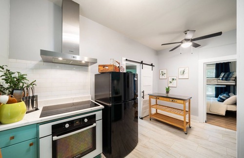 This cozy and stylish home is charming and inviting and is nestled in San Antonio’s Government Hill neighborhood—just one block from Fort Sam Houston, minutes from the vibrant Pearl District , downtown, airport, and the Alamodome. Enjoy a fully furnished, family-friendly space with cozy touches, a stocked kitchen, and a private yard. Perfect for families or as a couple retreat. The main bedroom has a queen size bed, bedroom 2 has a bunk bed with a full-size bottom, washer and dryer, shampoo provided, stocked kitchen, cooking utensils, and a cozy private outdoor seating area. Whether you're visiting for military events, conventions , or a Hill Country getaway, this peaceful cottage offers the perfect blend of comfort, convenience, and local charm.