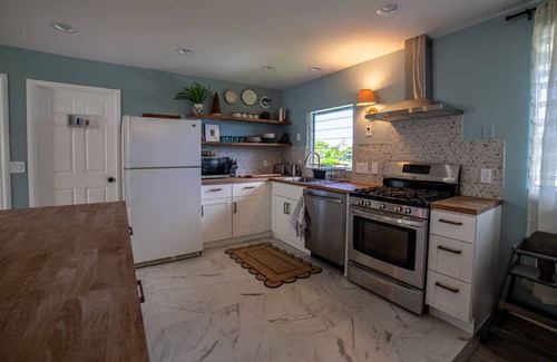 The house newly renovated & styled with lots of vintage items and local art . Family friendly, breezy, laid back.