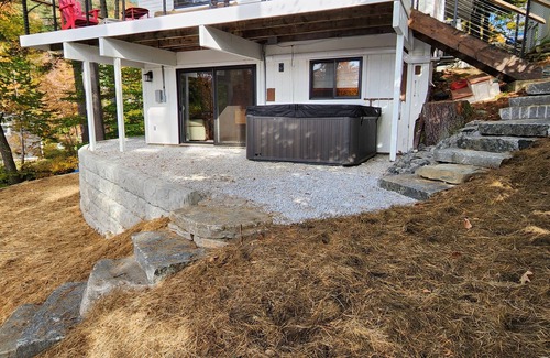Our house now has a newly renovated water front area including lakeside fire-pit patio, hot tub, and overall better stairs/ access to the lake from the house and the house from parking.