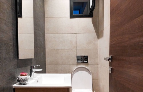 Upon entering, you are greeted by the spacious living area, tastefully adorned with contemporary furnishings, creating an ambiance of refined elegance. The carefully designed interiors provide a seamless fusion of style and functionality, ensuring a comfortable retreat for your stay.
