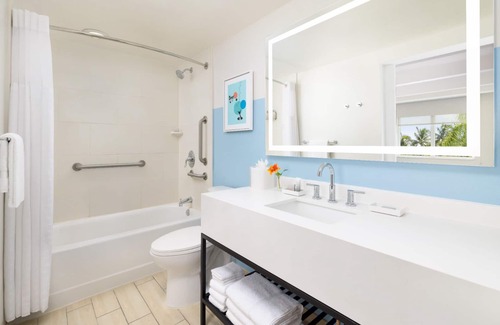 Located at the entrance to Key West, Blue Flamingo Resort offers a tropical escape with easy access to Duval Street, Mallory Square, and Fort Zachary Taylor State Park. This cozy room features a plush queen bed, modern coastal décor, and amenities like in-room coffee and a 55” TV.