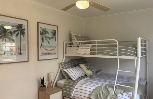 Experience Lemon Tree Passage like a local in this 2-bedroom house. Nestled in a serene setting, this property offers a nice escape for guests. With 1 queen bed and 1 double bunk bed, it's perfect for a small group or family. Enjoy the cool breeze on the outdoor patio or relax in the cozy living room. Book now and enjoy everything this house has to offer.