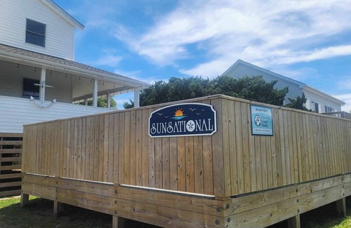 This very spacious two-story Ocracoke vacation home is ideal for the family desiring plenty of room. Located on Lighthouse Road, guests will enjoy a short stroll to the Ocracoke Lighthouse, a walk or bike ride to Springer's Point Nature Preserve, and Silver Lake Harbor. Sunsational offers a 12 x 24 saltwater pool! A bonus is a game room with an air hockey table and an indoor basketball hoop. 4 Bedrooms, 3 Baths: 3 with King, 1 with two Pyramid Beds (Queen on both top and bottom). Amenities include central air conditioning/heat. Complimentary wireless Internet access. Six flat-screen satellite TVs with DVD/DVRs. Soaking tub. Washer/dryer. Kitchen amenities include a second full-size refrigerator and a Keurig and standard coffee maker. Sheets and towels provided. Beds made for your arrival, with the exception of the top bunks. The exterior offers an unheated saltwater pool, large covered deck, screened porch, picnic table, hot/cold outdoor shower, park-style charcoal grill, fish cleaning bench, and covered parking. *2023 Pool Season - Open April 9 - October 14. Pets Allowed. Limit of 2. No Smoking. Military Discount Available. Discount can only be applied at the time of booking. No Partial Stays. **What's New for 2023: Pets Allowed. Property Layout: First Floor: Open kitchen and dining, living area with TV/DVD. Living Room. Den. Game Room. Hallway bath with shower. Laundry room. Second Floor: Primary Bedroom with King bed and Primary Bath with Soaking Tub and separate Shower. Two bedrooms, each with a King Bed. Bedroom with two Pyramid Beds (Queen over Queen). Hallway bath with tub/shower.