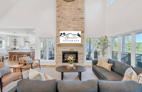 The best place to enjoy life on the lake is outdoors and this home comes with multiple areas to enjoy! Including a large covered outdoor veranda on the main level with stone fireplace, LED TV, large dining table and adirondacks to take in the amazing wide views, enjoy morning coffee, gather for meals or share memorable gatherings all throughout the day. The lower level game room opens to a lower covered patio with 8-person Hot Springs hot tub, LED TV and bar seating overlooking the lake and your private dock. All leading out to a pool veranda overlooking the main lake with large stationary and floating dock for swimming and boat parking.