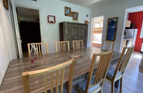 Pleasant apartment in the immediate vicinity of shops and ski lifts of Font d'Alagnon, consisting of 2 bedrooms, one with a double bed and the other with bunk beds and a double bed in 140X190, 1 bathroom, 1 separate toilet, 1 large living room with its sofa bed for 2 people, an independent kitchen that is equipped with refrigerator, microwave, oven, freezer, dishwasher, toaster, traditional filter coffee maker and kettle, raclette appliance... This accommodation has a capacity of 6 to 8 people. It has a balcony with garden furniture, perfect for enjoying the mountain air.