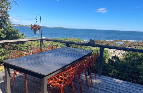 Take in the breathtaking views at our popular oceanside cottage with large deck. | House in Gouldsboro