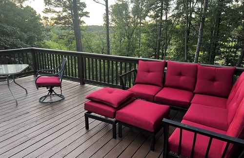 This cabin is perfect for your escape to Eureka Springs. Nestled in a tranquil setting, this lovely 1-bedroom retreat offers a wonderful getaway for guests. With amenities like a Large back deck for relaxing morning coffee. Large fenced in back yard for dogs. Dog door for freedom for your furry family. Gorgeous sunsets! Fire pit for those beautiful cool evenings and smores! Shaded glider for wooded relaxation. Full kitchen for peaceful evenings together. Ample parking. Easy to find and only few minutes away from Historic Downtown Eureka Springs. Provided hair dryer, AC, and heating, you'll feel right at home. Make your holiday one for the books with a stay at our place.