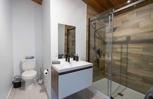 En réservant ce chalet, vous bénéficierez d'un accès exclusif et complet à l'ensemble de la propriété. De plus, avec votre réservation, vous aurez également accès à 2 paddleboards, 2 kayaks et un canot. Tout ce dont vous avez besoin pour vivre un séjour des plus exceptionnels.