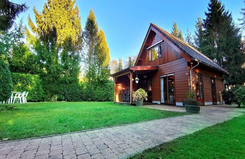 This bungalow in Epe, Wessel is a serene retreat surrounded by lush greenery, offering a peaceful escape from city life. The garden with comfortable furniture is perfect for relaxing, while the terrace invites you to soak up the summer sun. Inside, the bungalow is bright and warmly decorated, with cozy bedrooms featuring small libraries and direct access to the garden. A courtyard adds another spot to enjoy morning coffee or an evening drink.
