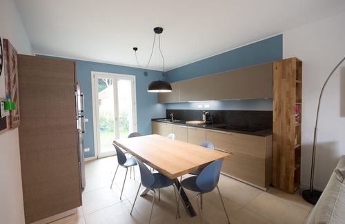 Furnished in a modern style, it enjoys every comfort and is suitable for large families.