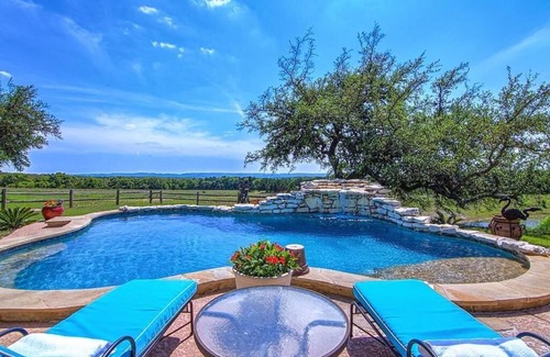 This beautiful 3 bedroom 3.5 bath, Blanco vacation rental invites you to enjoy sought-after Fredericksburg wineries, delicious distilleries, and a private outdoor haven with a large pool, hot tub and 118 Acres of Texas Hill Country to explore. Take advantage of the property's central location and easily pop into Austin and San Antonio for an adventurous day trip or night out in the city.