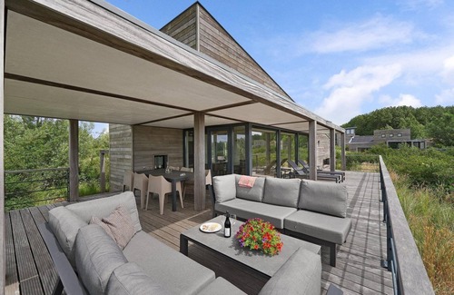 This villa enjoys a uniquely private position with no close neighbors, giving you a true sense of peace and freedom. The spacious, sun-soaked terrace looks out onto the surrounding dunes and greenery, with a distant view of the bay – the perfect place to relax with a glass of wine while the kids or dogs play safely outside. Nature lovers will appreciate the calm and green surroundings, with birdsong replacing traffic noise.