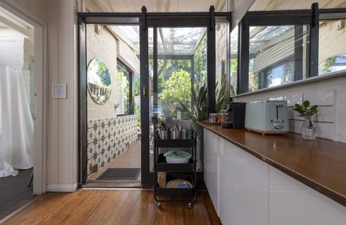 Holiday on the beach! Located in the heart of South Fremantle, This beautiful 1902 heritage-listed home is a rare find - just 300 m from South Freo Dog Beach and a 2-min walk 2 to pubs, cafes, bakeries & restaurants. Features polished wooden floorboards, high ceilings, large, dreamy bedrooms (with A/C) & outdoor shower. Eat at the breakfast bar, or dine alfresco & enjoy the green, lush garden morning or night. It's everything you need for a brilliant beach holiday stay. Free parking. Book now!
