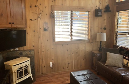 The Bear Den is a cozy cabin getaway in South Lake Tahoe perfect whether you are planning a romantic getaway or a family vacation. Close to the mountains, the Lake, and ski resorts. In the Summer months enjoy hiking and biking trails nearby. This cabin includes one bedroom with a queen bed and one LOW ceiling loft bedroom upstairs with one full bed and one twin. Includes all the comforts of home including a gas fireplace for those chilly Tahoe winter nights. BBQ on front patio and picnic table to enjoy those summertime BBQ's. Fenced in side yard is shared with next door cabin. Features a fully equipped kitchen, Cable TV & Apple TV, and Wifi internet.